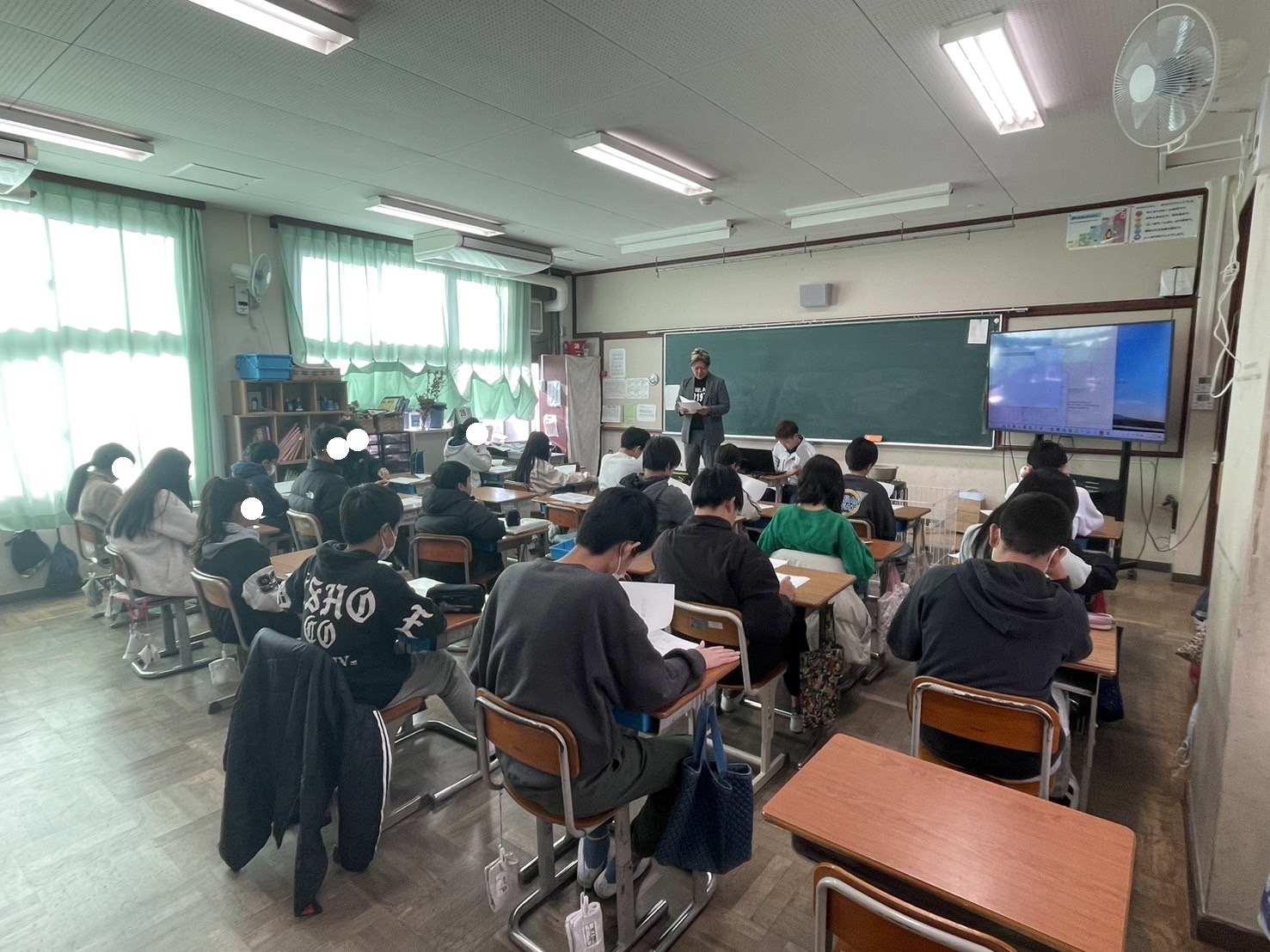 授業では、建設業の仕事内容や社会的役割、必要な資格や免許、仕事のやりがい、働くうえで大切にしていること、そして小学生のうちに大切にしてほしいことについてお話ししました。あわせて、ドローンによる現場の空撮映像を上映し、実際の建設現場の様子を紹介しました。子どもたちは真剣な眼差しで耳を傾け、建設業が社会を支える重要な仕事であることを、自分ごととして受け止めてくれました。